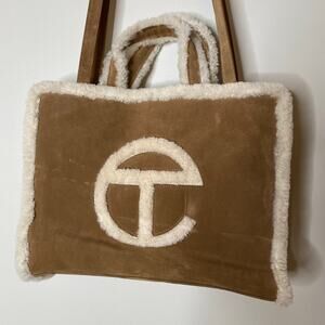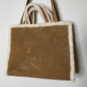 UGG X TELFAR Medium Suede Shearling Crossbody Shopper Bag Tan