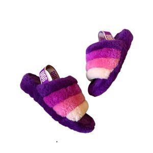 UGG YEAH BERRYLICIOUS MULTI SLIDE FUR SLINGBACK SHOES SLIPPERS SIZE 8 Purple Pink