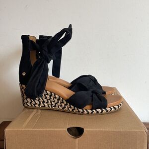 UGG Yarrow Espadrille Wedge Sandals Black Women Size 7.5/UK 5.5/EU 38.5