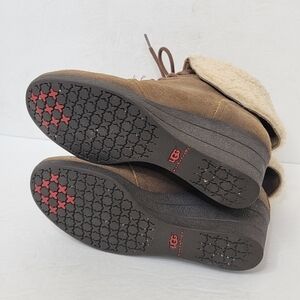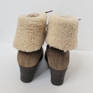 UGG Zea Brown Leather Shearling Lined Lace Up Wedge Combat Cuff Boots 7 1003360