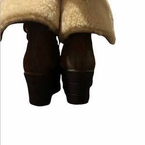 UGG Zea Waterproof Wedge Lace up Brown Boots. Genuine Shearling Lined, waterproof Suede, Chocolate Brown with a distressing look to them. Inside fit super worm for a