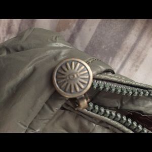 -Sleek nylon covers bunting with elastic banding at the cuffs for a snug fit-- snowsuit is very warm & not bulky.