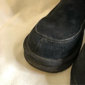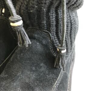 UGG black suede knitted fur lined tassel mid length boots size 8
