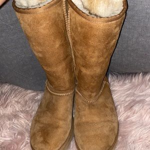 super soft and comfy UGGs! they’ve been worn quite a few times, but are still in good condition! the only defect is a small hole on the back of the right boot. could probably be sewn back up because it’s barely noticeable anyway. smoke and pet-free home.