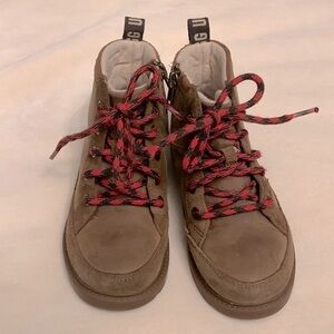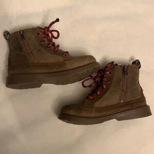 UGG brown leather high boots red laces Robley Waterproof Boot size 12 walnut