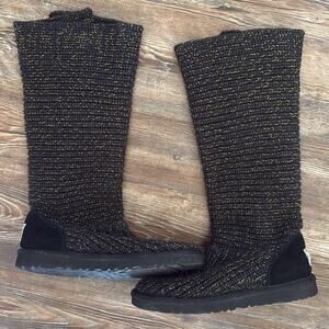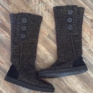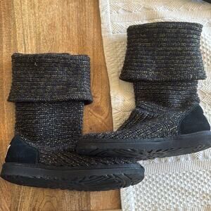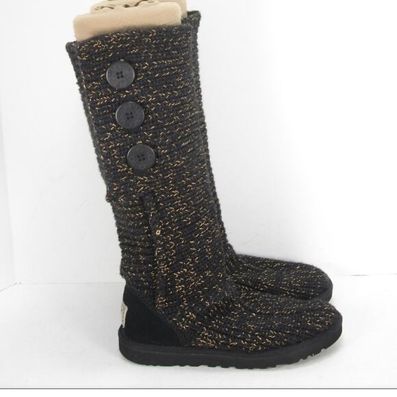 UGG cardy crochet fold over black metallic gold size 8 women’s