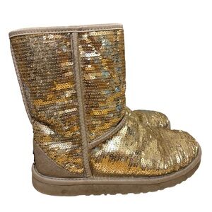 UGG classic boot gold sequin Sherpa lined size 5 US women’s
