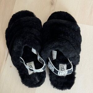UGG girls Fluff Yeah Slippers slide on sandals faux fur kids fuzzy cozy house