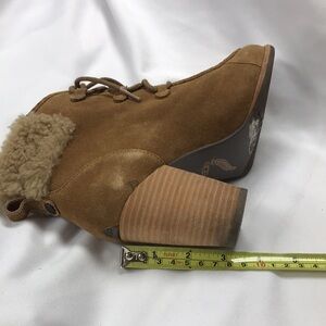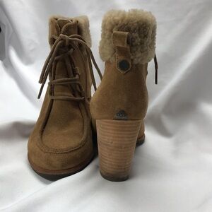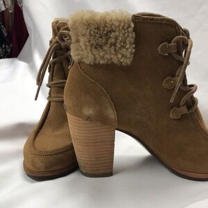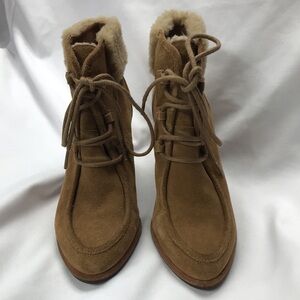 Brown suede heeled boots with Sherpa detail. Women’s size 7 in good condition with some minor imperfections as shown in last 3 photos.