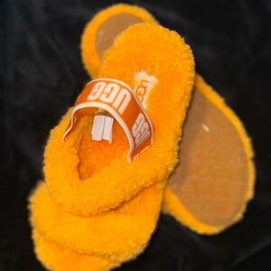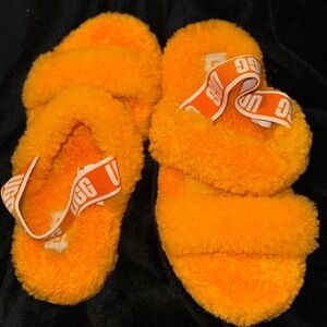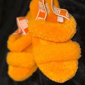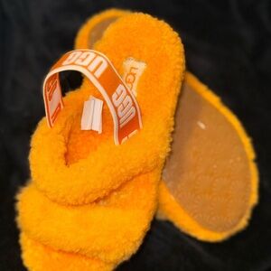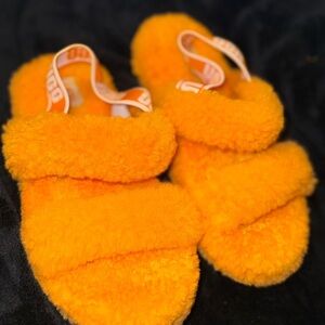 UGG Oh Yeah Orange Furry Fuzzy Comfort Slide Slippers Size 2