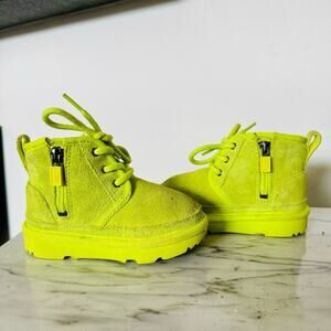 UGG lace up zipper side grinch Lime green toddler boots lined size 7