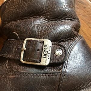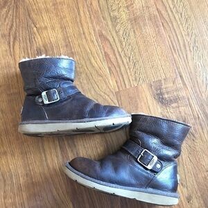 UGG Australia leather Kensington short dark brown distressed motorcycle boots with shearling lining
