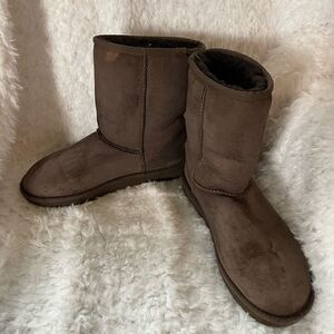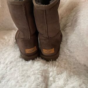 UGG leather brown suede with fur lining size 8 pre owned in good used condition both boots have stain marks see all pictures any questions please message