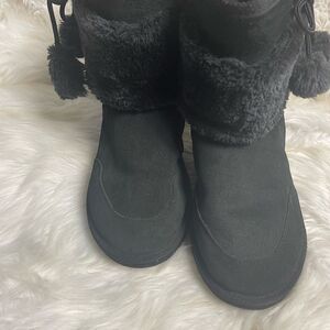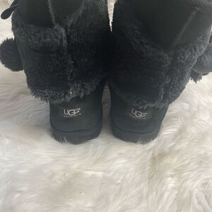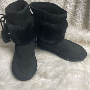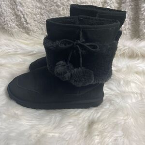 UGG leather suede furry slip on boots with pompom bow accent SZ9