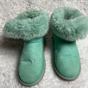 UGG leather suede mint green short boots side button fur lining big girl SZ4