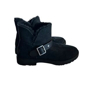 The Romely Short Buckle is an all-purpose fashion boot featuring a sleek silhouette, understated heel, and versatile shaft height to pair with all your favorite looks. Made of premium suede and sheepskin, it's lined in our signature UGGplush™ wool blend and finished with an ultra-cushioned Treadlite by UGG™ outsole.