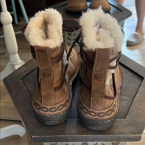 Warm UGG boots with plush shearling lining. Ideal for winter wear.