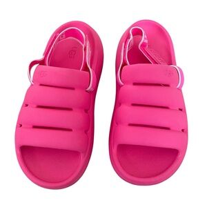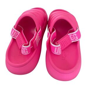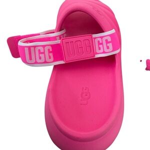 These UGG sandals offer a bold pink hue. Easy to slip on. Perfect for active play.