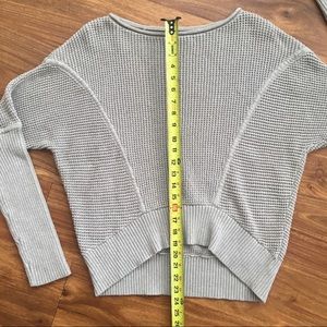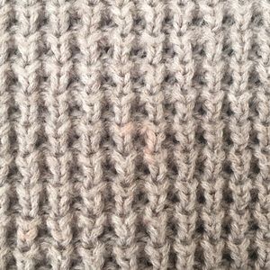 UGG hi-lo dolman sleeve sweater. Wide scoop neck. Light gray-taupe color. Has a couple very small, barely noticeable spots of pinkish discolor on front, shown in close-up photo.