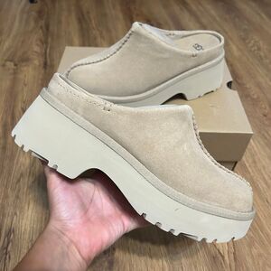 UGG tan suede platform heeled clogs mules slip on shoes women’s 9 new in box