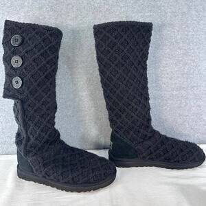 UGG woman’s sz 9 Black Tall Cable Knit 3 Button Pull on Boots Shearling Insoles