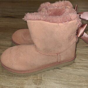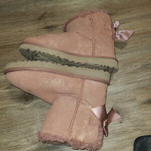 UGG women 7 Bailey bow Glimmer Boots booties sheepskin