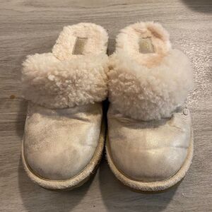 UGG, women's shiny cream, sherpa lined comfortable slip on shoes size 4