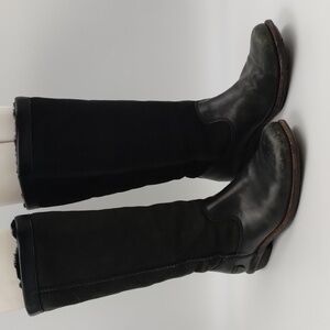 UGG women's size 7 black leather suede tall boots under knee pull on fuzzy