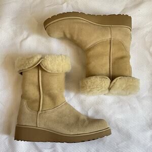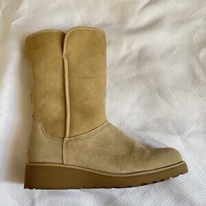 UGG Amie Wedge Suede Sheepskin Women's 6.5 Winter Snow Boots Pull On Fur Lined