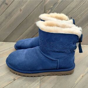 UGG Australia Dae Sunshine Blue Suede Fleece Lined Short Boots Womens Size 8