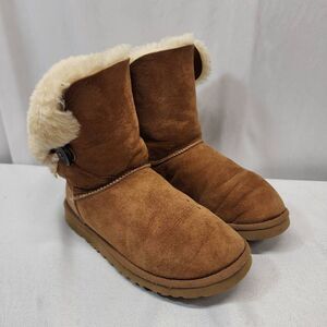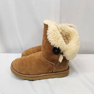 UGG Australia Women's 7 Boots Bailey Button Chestnut Sheepskin Suede Brown Boots