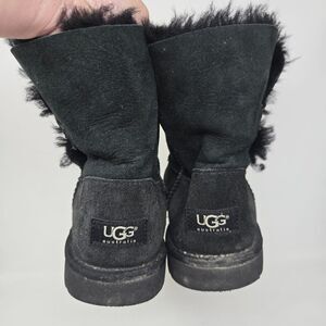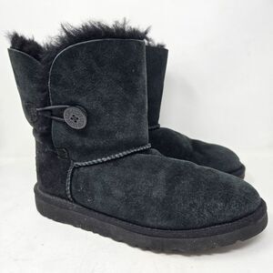 UGG Bailey Button II Winter Boots Womens Size 5 Black Leather Sheepskin 5803