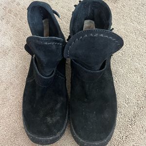 UGG brand suede black short ankle boots with silver buckle. Size 7 1/2. Used but in good condition and dusty as I wore them one weekend to a music festival.