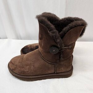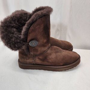 UGG Boots Women 8 UGG Bailey Button Sheepskin Winter Boots Brown