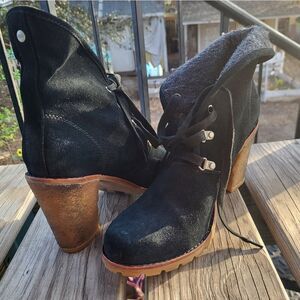 UGG Calynda Ankle Boot Black Suede Lace Up 12