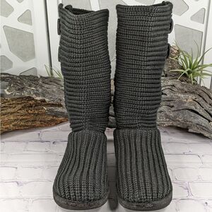 Our Classic silhouette is recast in a warm, chunky sweater knit that's convertible based on your mood – pull all the way up the calf, slouch it down a bit, or fold all the way over for a shorter style. Three large buttons decorate the top of the shaft and three smaller ones appear when the boot is cuffed. The Cardy is lined with a plush wool insole, while our signature lightweight sole provides cushioning, traction, and durability. Pair these boots with slim pants and a leather jacket for weekend events.