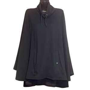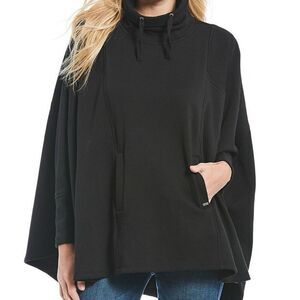 UGG Faux Fur Lined Black Cowl Neck Oversized Cape Drawstring Neck Pockets SZ XL