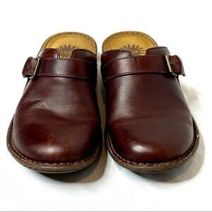 UGG Livia brown leather shearling lined clogs size 7. Upper leather. Lining leather and genuine sheep skin. Outsole rubber. Heel height 1.5”. Very good condition.