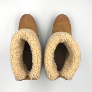 UGG Lynnea Fold Over Brown Leather Shearling Cuff