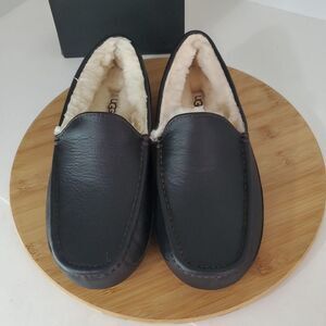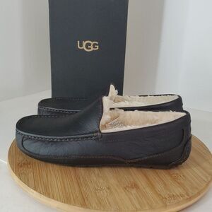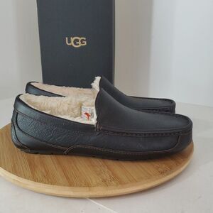 UGG Men's Ascot Slipper Dark Spice Leather Sheep Wool Size 8 NIB