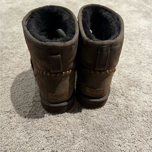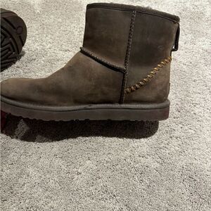 UGG Mini Deco Boot. Hard to find! Dark brown with stitching!