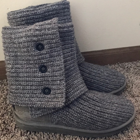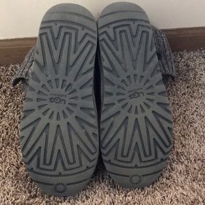 Authentic gray knit Ugg’s! Worn only a few times and stuffed with tissue paper to keep shape when not worn. In excellent condition with only a little salt stain on the heel (which can be removed very easily). These can be worn folded down or extended up for a longer boot look. Very comfortable and can even be used as slippers!