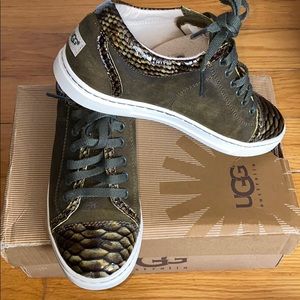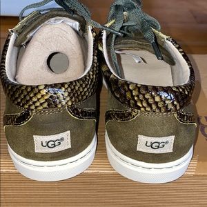 Uggs with laces wool on the inside behind heel brand new in a box the color is olive green.