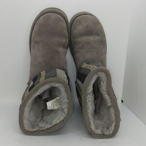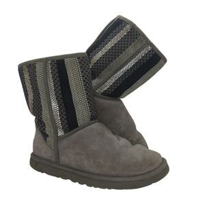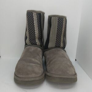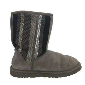 UGGS Australia Womens Classic Short Gray Pattern Suede Shirpa Lined Boots- sz. 8