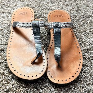 Ugg Silver Leather Slip on Sandal, Size 8 (M)