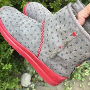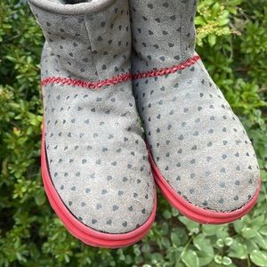 Awesome I ❤️Uggs low boots woman’s size 6 Pics accurate/ clean and plush inside!Red Grey and beige sheepskin ❤️🔥