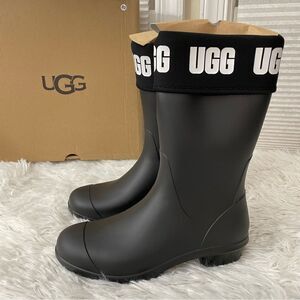 UGG WOMENS SIENNA MATTE GRAPHIC TALL RUBBER BOOTS WATERPROOF BLACK SZ 5 NEW