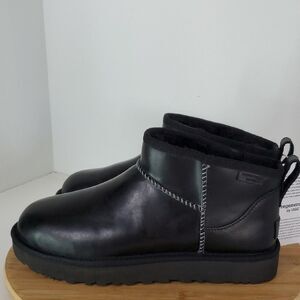 UGG Women's Classic Ultra Mini Black Leather Regen Boots Size US 9 NWOB