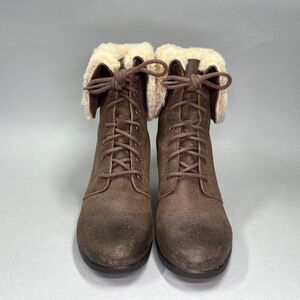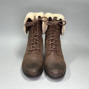 UGG Zea Boots Women's Size 11 Brown Leather Wedge Lace Cold Weather Waterproof