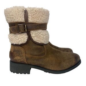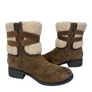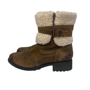 UGG boots 10 BLAYRE brown leather with shearling lining zip moto style